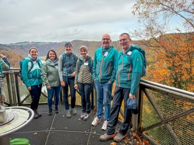 Wegen des schlechten Wetters wurde am Vortag kurzfristig ein Ersatzprogramm organisiert. Wahlweise konnte man, wie vorgesehen, an der Donau radeln oder man wanderte zum Aussichtspunkt über der bekannten Donauschlinge.
